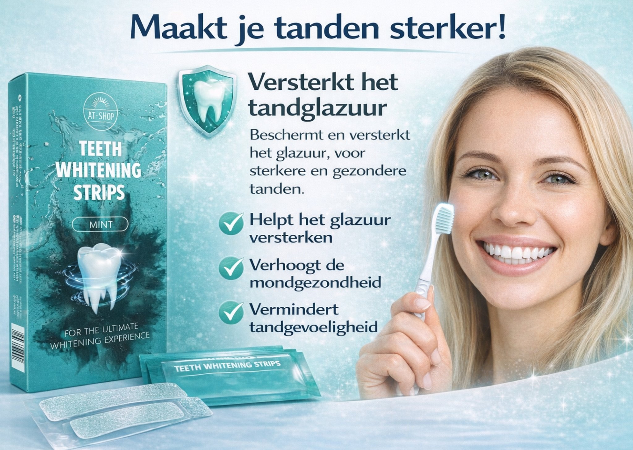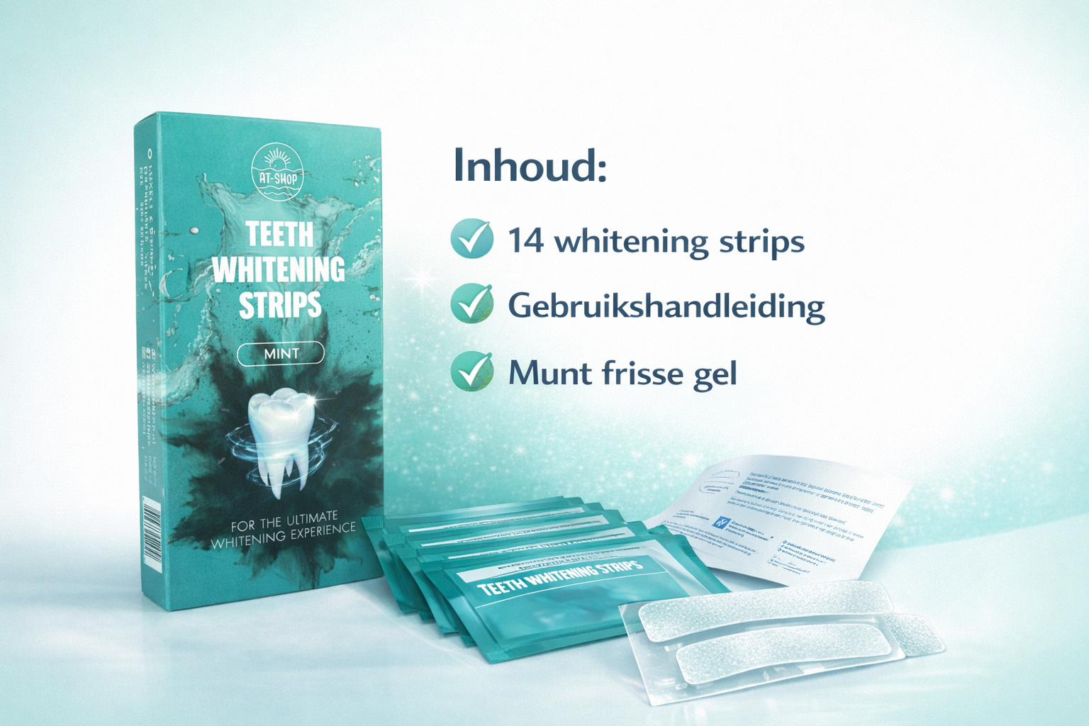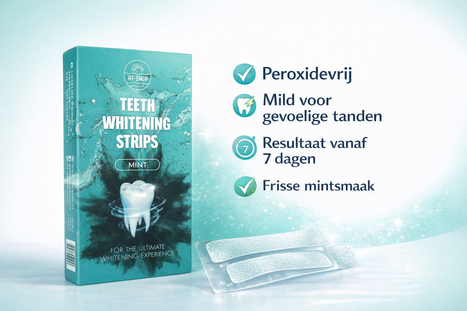 Met de AT-Shop Teeth Whitening Strips bleken jij je tanden snel, effectief en comfortabel — gewoon vanuit huis.